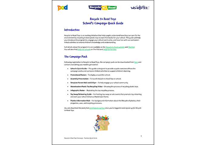 The Recycle to Read Schools Campaign Quick Guide is a practical resource designed to help schools participate in the Recycle to Read Toys initiative.
