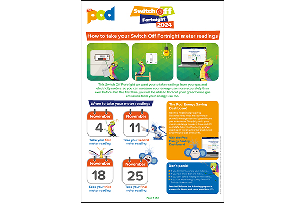 The Switch Off Fortnight Primary Campaign Pack provides schools with assemblies, posters, certificates, and activities to help pupils save energy, measure their school’s impact, and celebrate achievements.