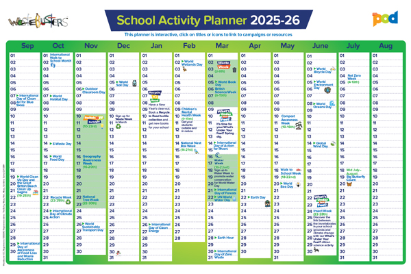From Pod campaigns such as Switch Off Fortnight to Earth Day and Walk to School Week - with our handy planner you'll be sure to find interesting activities all year round!